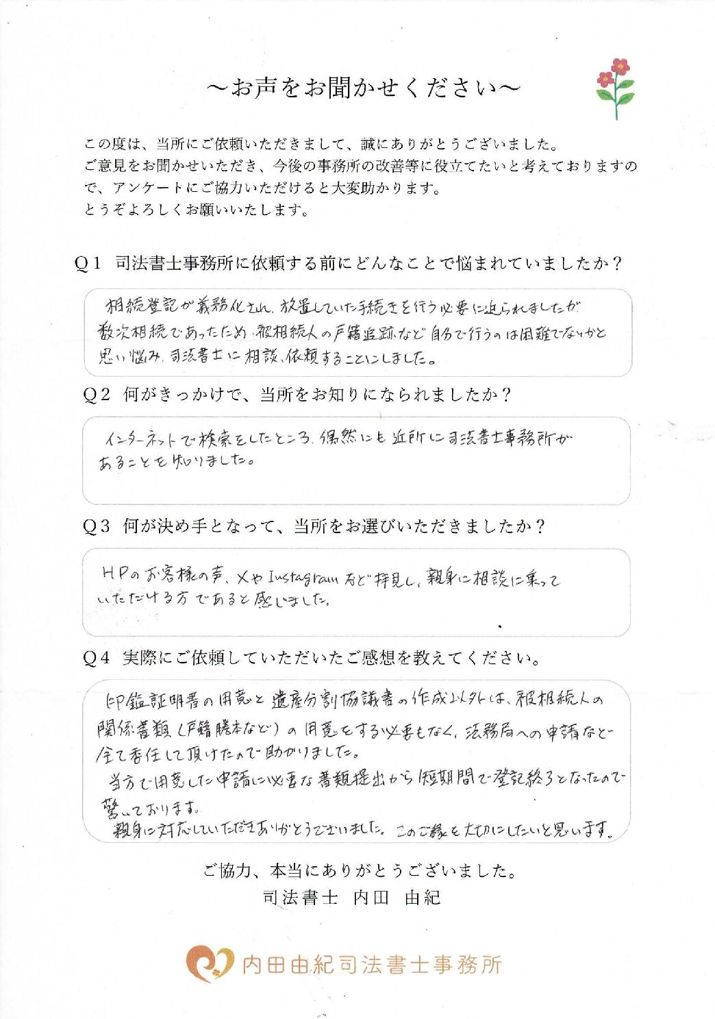 鎌倉市在住 O様(相続登記・法定相続情報一覧図作成)